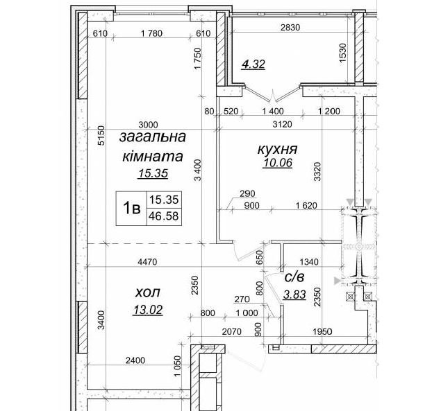 Площа46.58 м²