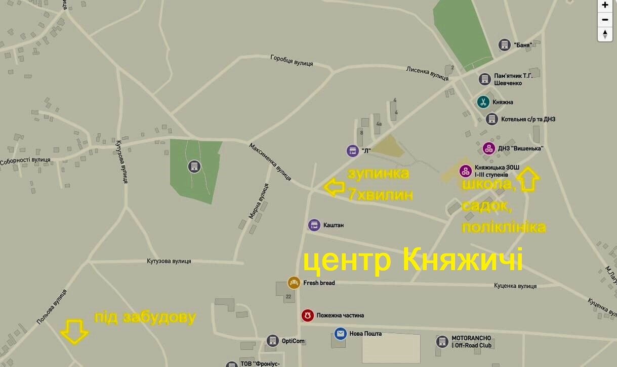 Під забудову Метро Лісова Княжичи - ЦентрЗемельный участок: 10 соток Без комісії! Площа: 10+ соток, є можливість докупити. Княжичі - Центр Піший асфальтований доступ до школи, поліклініки, парку, дитсадка, Нової Пошти. Екологічне місце. Асфальтований під'їзд до ділянки. Електрика на межі ділянки! Правильне цільове призначення - під будівництво. Не потребує підсипки, бо рельєф ділянки вище проїзду на півтори метри, на ділянці родючий чорнозем на піщаній основі, незаболочена місцевість, жодних проблем із септиком. Сусіди: житлові будинки постійного проживання. Без обмежень на ділянці. Без іпотек та арештів. 7 хв до маршрутки на Київ №730 з шостої до опівночі з інтервалом 15 хвилин 20 хв до метро Лісова, метро Чернігівська. Чудове місце для постійного життя. Цільове призначення: 02.01 Для будівництва і обслуговування житлового будинку Продаж від власника. Призначення ділянкиІндивідуальне житлове будівництво Id оголошення573204 Оголошення додано12.12.2021 Оголошення оновлено18.05.2022 Поділитися 15 500 $ Власник: Андрей Повідомлення |