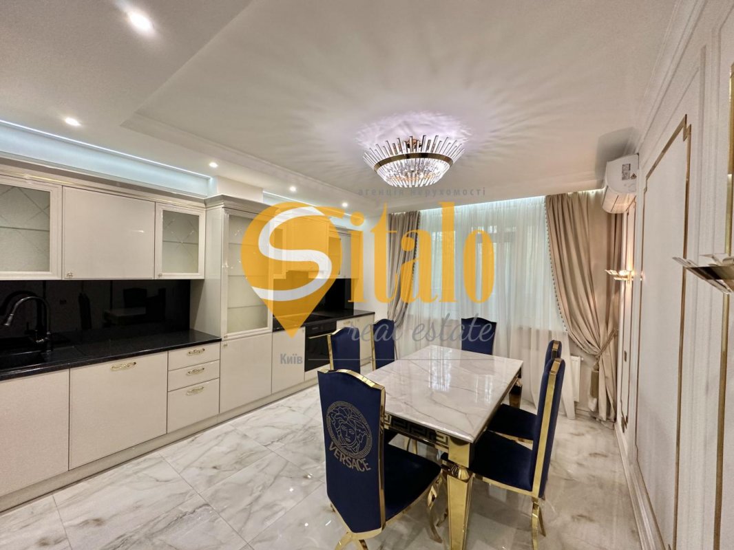 Эксклюзивная 3-х комнатная квартира с дизайнерским ремонтом центр Лукьяновка Шевченковский (ул. Коперника, 3). Продается 3-х комнатная квартира 125 кв. метров в Шевченковском районе (ул. Коперника 3). Квартира расположена на 2-ом этаже 24-этажного здания. Общая площадь – 124,4 кв.м; жилая – 75,8 кв.м; кухня-столовая 18,2 кв. метров. Квартира состоит из трех отдельных комнат: гостиная (28,4 кв.м.) и две спальные комнаты (20,6 кв.м. и 26,8 кв.м.), уютной кухни-столовой, просторного холла 15,4 кв.м. и двух санузлов (6 кв.м. и 2,5 кв.м.). В квартире выполнен дорогостоящий стильный дизайнерский ремонт, согласно дизайн-проекту и с авторским надзором завершен в 2021 году. В квартире практически никто не жил. В соответствии с дизайн-проектом: качественная проводка со щитовой и распределением по зонам на отдельный автомат, розетки и сенсорные выключатели премиальной марки LIV;столярная часть (межкомнатные двери, плинтуса, шкафы) выполнены из массива дерева по индивидуальному заказу одного из ведущего производителя и установлены идеально; в каждой комнате и в кухне-столовой установлены инверторные кондиционеры LG Dual Inverterс функциями обогрева и охлаждения, возможность управления со смартфона; разводка интернета под каждый телевизор. Напольное покрытие – ламинат экстра-класса и плитка производства Испании. Все подоконники - мраморные. Обои Roberto Cavalli и Ferre, на окнах дорогой текстиль. Встроенная кухня выполнена по эксклюзивному дизайну одним из ведущих производителей Украины, столешница из натурального камня, фурнитура Blum. Техника (посудомоечная машина, варочная поверхность, духовой шкаф и вытяжка) Bosch, холодильник Hitachi, телевизоры Samsung. Обеденный стол и стулья Versace. Мебель – производства итальянских мебельных фабрик Adora (в переводе с латыни означает "обожаемая") ценящим гармонию строгости и изысканности с престижем и безупречным стилем и Giorgiocasa. Большая спальная комната 26.8 кв.м с двуспальной кроватью размера king size, и гардеробной комнатой. Вторая спальня тоже с двуспальной кроватью размера king size. Отдельного внимания заслуживает холл (15,4 кв.м.), который оборудован вместительными шкафами для хранения вещей, и благодаря оригинально оформленным фасадам, производит впечатление легкости и объемности. В квартире 2 застекленных балкона. Большой санузел с ванной и душевой, итальянская сантехника Bugnatese. Стиральная и сушильная машина Bosch. Есть бойлер, аккуратно спрятан в шкафу. Полотенцесушитель с регулировкой температуры. В квартире установлена охранная сигнализация AJAX, бронированная входная дверь, подогрев полов в санузлах и много других деталей, которые сделают проживание в квартире приятным и неповторимым. Собственники практически не проживали в квартире, бережно и с любовью относились ко всем предметам интерьера, уход за которыми осуществлялся на профессиональном уровне, поэтому квартира в идеальном состоянии. Дом новый, построен в 2016 году, монолитно-каркасный (наполнение – кирпич). Ухоженный подъезд, три скоростных лифта, консьерж. Отличное месторасположение дома, все необходимое для комфортного проживания в шаговой доступности: детские сады, школы, магазины и супермаркеты, кафе и рестораны, развлекательные центры, фитнес залы, клиники, рядом Лукьяновский рынок. Хорошая транспортная развязка - до метро Лукьяновская 400 метров. Двор огорожен, большая придомовая территория; па