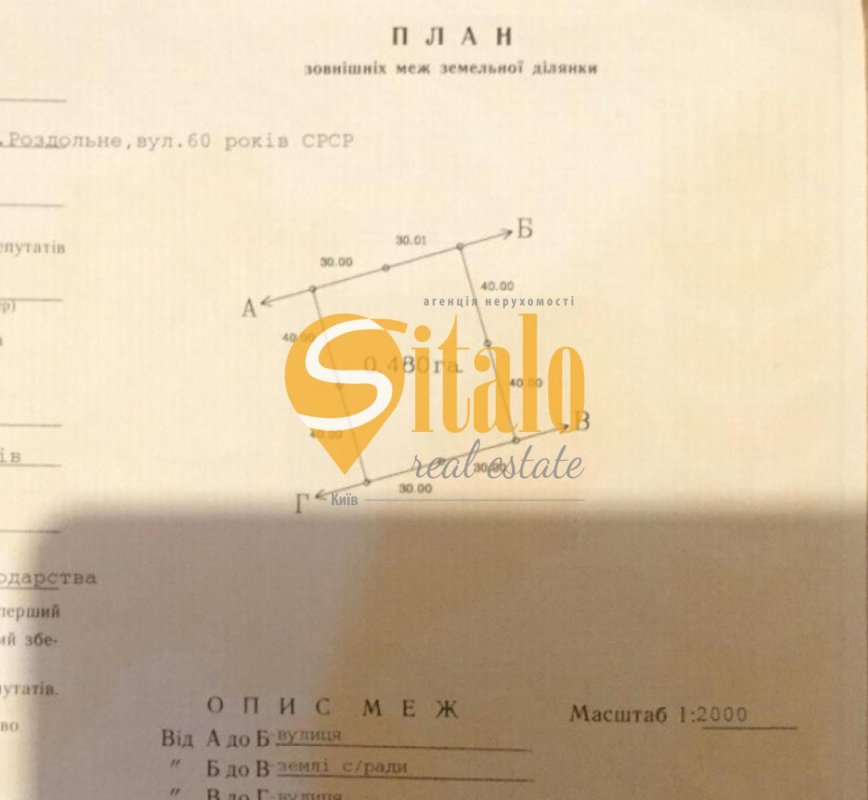 Продаж великої земельної ділянки під індивідуальне будівництво в Романкові, Новообухівська траса. Поруч розташоване котеджне містечко «Сонячна долина», Блакитне озеро, ТЦ Мануфактура, Ходосівка, Підгірці, Лісники. Ділянка площею 48 соток, правильної форми 80/60м. Поряд є всі комунікації: вода, газ, електроенергія. Асфальтований доїзд з обох сторін. Відстань від Києва 15 км, свіже повітря, гарний краєвид. Супер локація - з усіх сторін вже забудовані сусіди! Велика ділянка - можна поділити на 2 заїзди! Без комісії. Код об'єкта - 11661 Id оголошення689878 Оголошення додано26.10.2022 Оголошення оновлено24.04.2026 Поділитися 6 900 $ Агент: Сергій Байцар АН 'Sitalo Real Estate' Повідомлення |