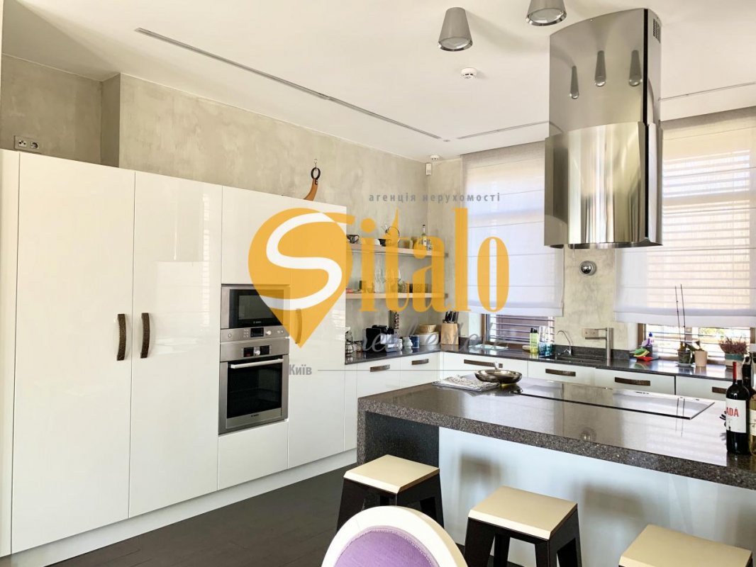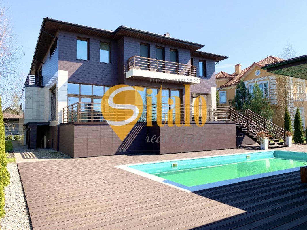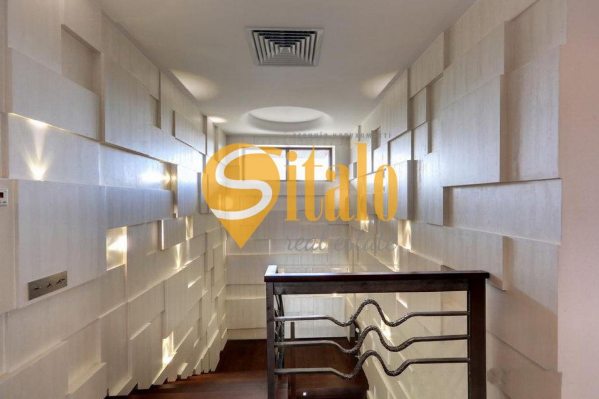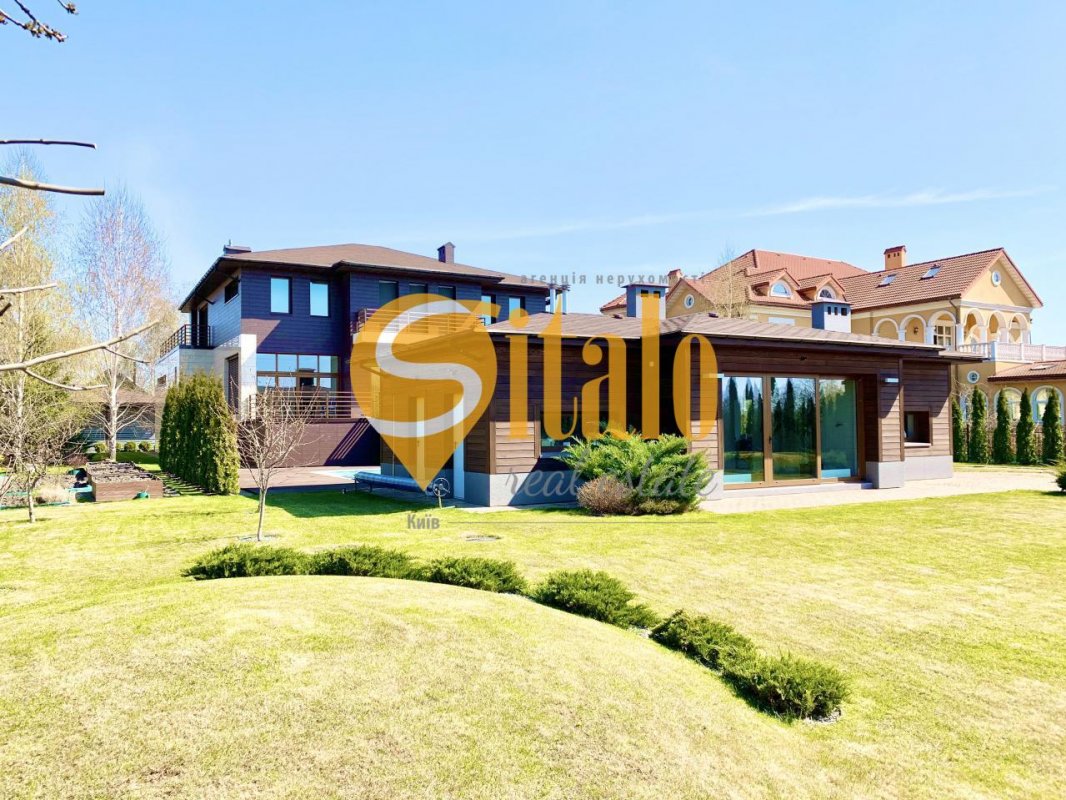 Местоположение: самый масштабный коттеджный городок в Украине « Золоче », 100 га застройки, около 300 жилых домов. Экологически чистая зона – в городке озёра, вокруг — леса. Всего 9 км от Киева. Коттедж расположен на центральной улице “Золоче ”. Современный коттедж премиум уровня. Дом выполнен в стиле умного минимализма — сочетание максимального комфорта и предельной функциональности. В архитектуре коттеджа преобладают прямые линии, что смотрится особенно эффектно в сочетании с многоуровневой конструкцией. Цветовая гамма сочетает тёплые тона, разбавленные гладким стеклом. Огромное количество панорамных окон делает дом светлым и просторным. Террасы выходят на южную сторону дома и граничат с летним бассейном. Особенности коттеджа: энергосберегающий дом, индивидуальный проект, дизайнерская отделка, эксклюзивная сантехника и мебель от ведущих европейских производителей. Использованы современные энергосберегающие решения.! Материал: Cтены — керамический кирпич утепление минеральной ватой, вентилируемый фасад облицован керамогранитом . Крыша — бесшумная черепица, утеплена минеральной ватой. Материалы, используемые в отделке, ведущих мировых брендов. дизайнерская кафельная плитка в ванных комнатах. CIR, Marazi, Sant’Agostino, Bardelli шелковые обои немецкого производства энергосберегающие окна ALUMIL и двери премиум бренда GRAUTE обеспечивают надёжную звукоизоляцию и сохраняют тепло в зимнее время года. Климат: Система климата спроектирована с прицелом на энергосбережение . Отопление дома производится с использованием водяного теплового насоса VIESSMANN. В качестве резервного источника тепла установлен газовый котел VAILLANT . предусмотрены магистрали для установки солнечных коллекторов . Дом оборудован системой приточно-вытяжной вентиляции GEA с рекуперацией воздуха и системой охлаждения от теплового насоса а также системой природного охлаждения Natural Cooling с минимальным использованием энергоносителей. Мебель: Дом полностью меблирован. Некоторые марки мебели: Arketipo, Presotto, Aran, Seven Seide , Penta Mobile, Interstyle, Casamilano, Catellan, MDHouse и тд. Освещение: Linea Light, I-LED, Tradel , Mechini, Guzzini, OTY Light и т.д. Бытовая техника: встроенный центральный пылесос DRAIN VAC, посудомоечная машина BOSCH холодильник Liebher side-by-sude, духовой шкаф BOSCH микроволновка BOSCH стиральная машина BOSCH индукционная кухонная плита, встроенная панель с сенсорным управлением Touch control c распознаванием наличия посуды. Сантехника: GESSI , LAUFEN, DURAVIT, Branchetti, Hoppe Двери: Tre-Piu, RES, GRAUTE, Teckentrup О планировке Два этажа цокольный этаж гараж на 2 авто навес под несколько авто, катер. Цокольный этаж: хаммам, комната отдыха, кинозал, ванная комната, котельная. 1-й этаж: кухня-столовая, гостиная с камином SPARTHERM, SPA-зона, гостевой сан.узел. Выход на террасу с гостиной и столовой и SPA. 2-й этаж: спальня хозяев, детская спальня, игровая, чайная комната, 2 гардеробные, 2 ванные комнаты. Выход на вторую террасу с детской и чайной комнат. Патио. максимум стекла, с одной стороны патио шикарный вид на озеро, с другой – открытый бассейн. Планировка: кухня, столовая-патио, ванная комната и барбекю. Стены патио: кирпич вентилируемые фасады — лиственница. Бассейн: 10х4м с переменной глубиной и противотоком. Инфраструктура коттеджного городка: рядом детский сад-школа Zoloche international School, дом быта, химчистка, автомойка, ЖЕК, пункт охраны, мед пункт. В городке: яхт-клуб, мини-маркет, фи