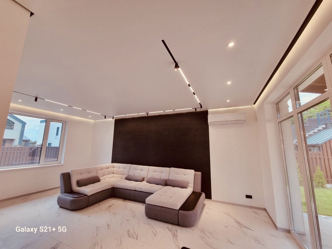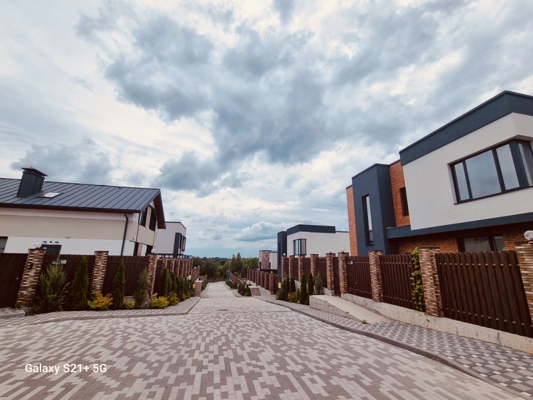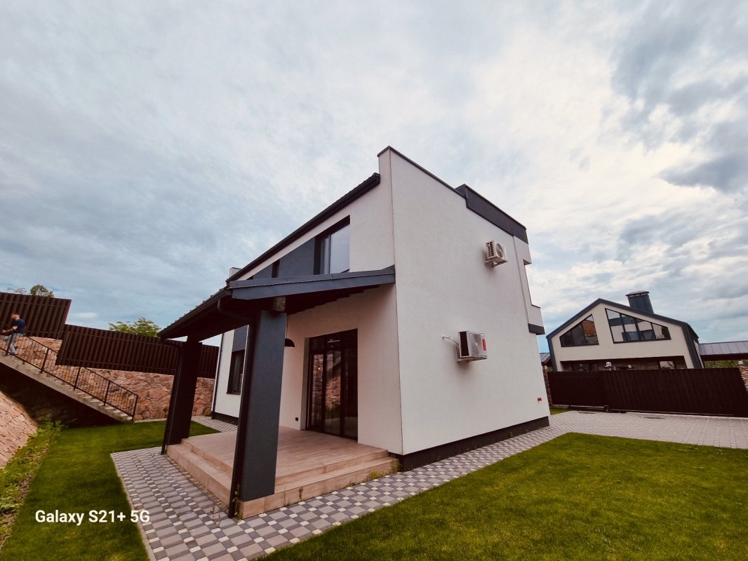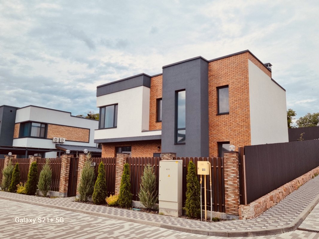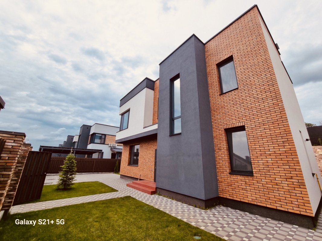 Обуховский район Киевской области, село Лесники, КГ Солнечній склон (закрітая охраняемая территория на 26 домов, своя детская и спортивная площадки, озеленение, асфальт, тротуарная плитка, охрана 24 на 7, видеонаблюдение), продам 2 єтажній кирпичній дом 160 кв. м. +20 кв. м. терраса, 5 комнат, 3 санузла, дизайнерский ремонт со встроенной мебелью. Коммуникации-скважина 80 м, канализация септик с переливом 12 м3, газовій котел, теплій пол, камин в гостиной. На земельном участке 5.1 сотка парковка на 2 авто, тротуарная плитка, газон. Цена 295 000 у. е.