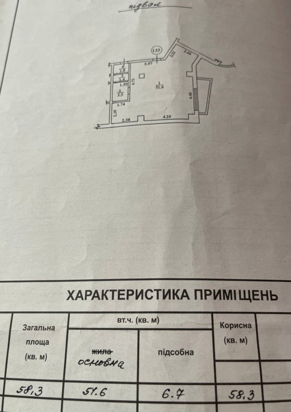 Площа58 м²