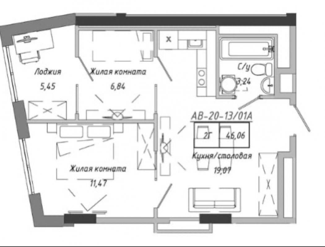Площа46.06 м²